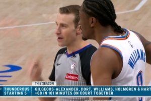 SGA+多特+杰伦威+切特+哈滕组合本赛季首发101分钟 正负值达+60