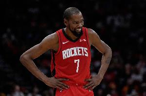 上半场比赛中,火箭外线手感十分糟糕,直到第二节还剩三分40秒才由杜兰特命中第一记三分。